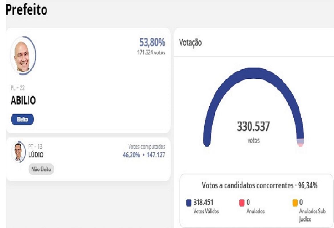 Apoiado pelo governador Mauro Mendes e com o ex-presidente Jair Bolsonaro em seu palanque, o ex-vereador cassado e deputado Federal Abilio Brunini venceu as eleições e é o próximo prefeito de Cuiabá. Ele derrotou o médico Lúdio Cabral no segundo turno, com 53,80% dos votos válidos, ou seja, 171 mil 119 votos, enquanto que o seu oponente, conseguiu 46,20%, ou seja, 146 mil 966 votos, de um total de votantes em 318 mil e 85 eleitores, este segundo turno teve um total de 7 mil 225 votos nulos, ou seja 2,19%, e 4 mil 847 votos em branco, ou seja 1,47%.