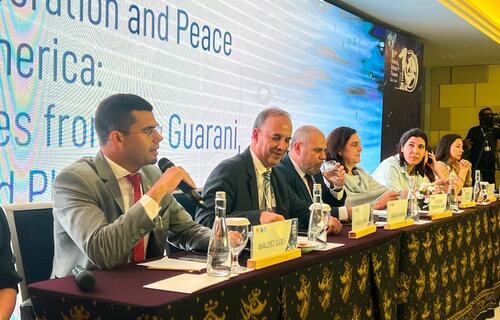 O MIDR também participou, nesta terça-feira (20), de reuniões a respeito de cooperação na gestão de água que abastece mais de um país, como na cooperação binacional entre Brasil e Uruguai na governança da Bacia da Lagoa Mirim, na Bacia do Prata, que atende pessoas do Argentina, Bolívia, Brasil, Paraguai e Uruguai, o Sistema Aquífero Guarani, entre outros.