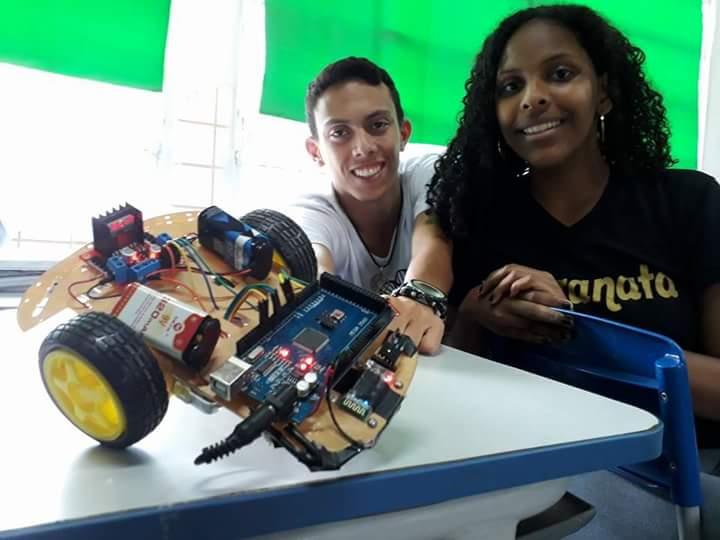 Os alunos Ana Celly, Emanuelly Sanches, Igor Hiro, Wallacy Matheus e Welington Fernandes vão concorrer com o projeto Arduino SmartCar a um carro de controle remoto via bluetooth através do aplicativo Bluetooth RC Controller.
