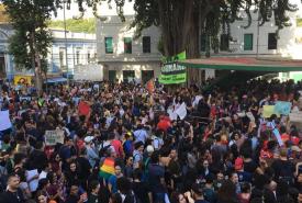 Manifestantes tomam as ruas do centro de Cuiabá em protesto contra o desmonte da educação pública promovido pelo governo Bolsonaro