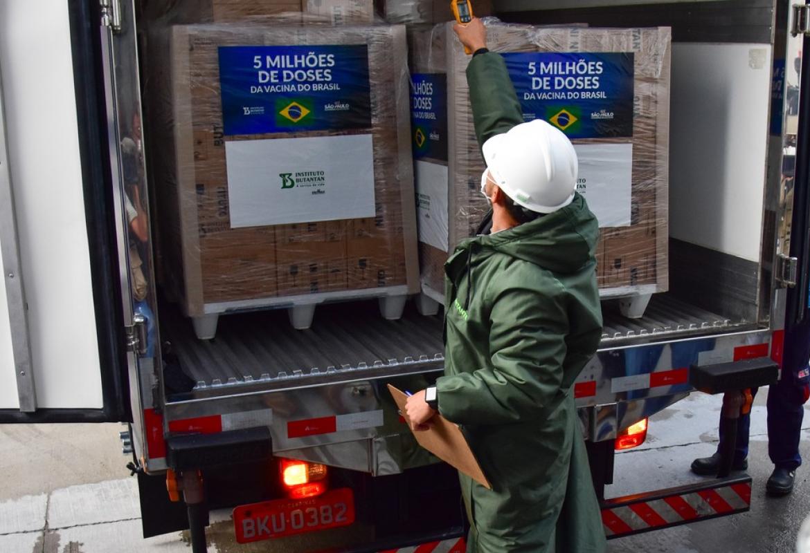 O governador João Dória acompanhou a liberação da remessa de imunizantes, entregue ao Ministério da Saúde para a distribuição em todo o país.