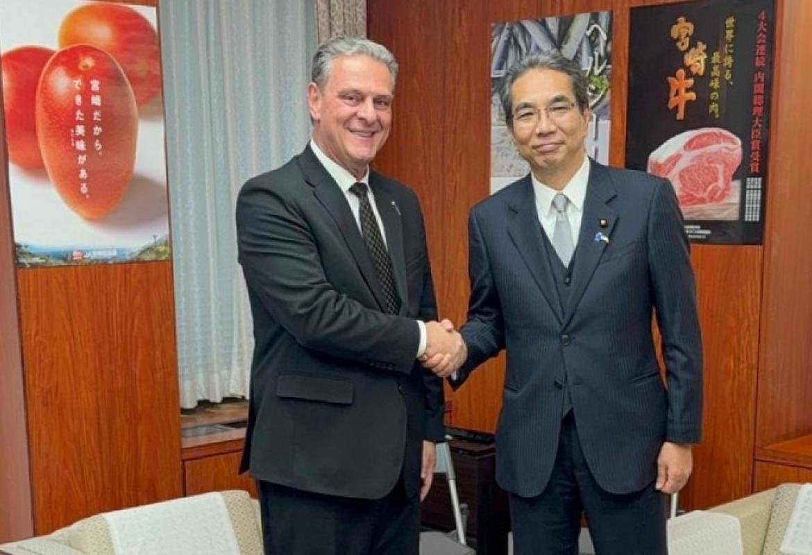 O ministro da Agricultura e Pecuária, Carlos Fávaro, reuniu-se com o ministro da Agricultura, Florestas e Pesca do Japão, Taku Eto, para discutir oportunidades de cooperação e o avanço no comércio bilateral.