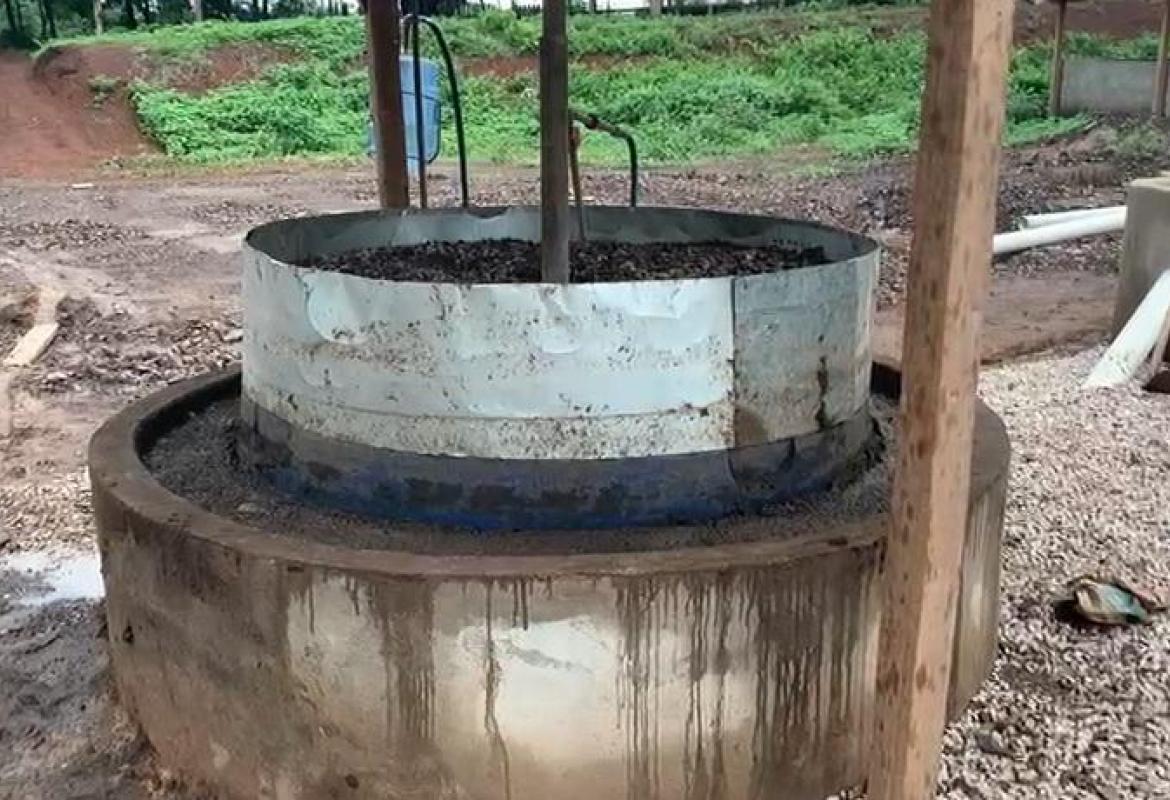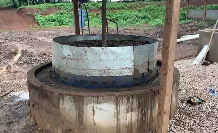 Sobre o sistema, Roberto explica que o biodigestor indiano tem o formato de um poço e se movimenta de cima para baixo de acordo com a produção do biogás.