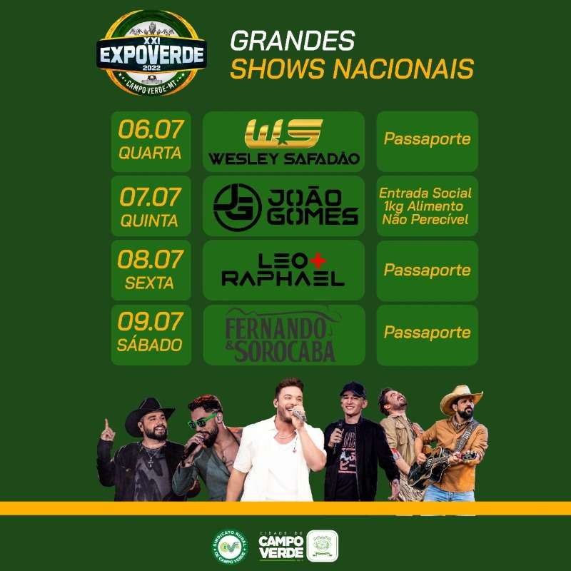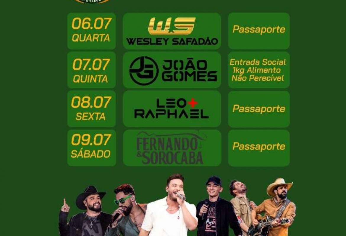 Entre os dias cinco e nove de julho acontece a Expoverde com a presença de artistas nacionais como Murilo Huff, Rionegro & Solimões e Naiara Azevedo.