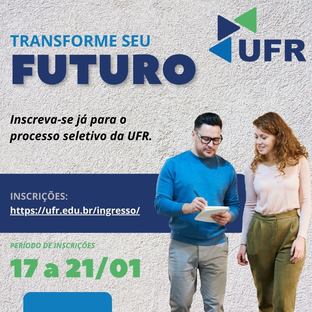 As inscrições para o processo seletivo próprio da UFR devem ser realizadas entre os dias 17 e 21 de janeiro exclusivamente por meio da Central do Ingresso, no site da Universidade.