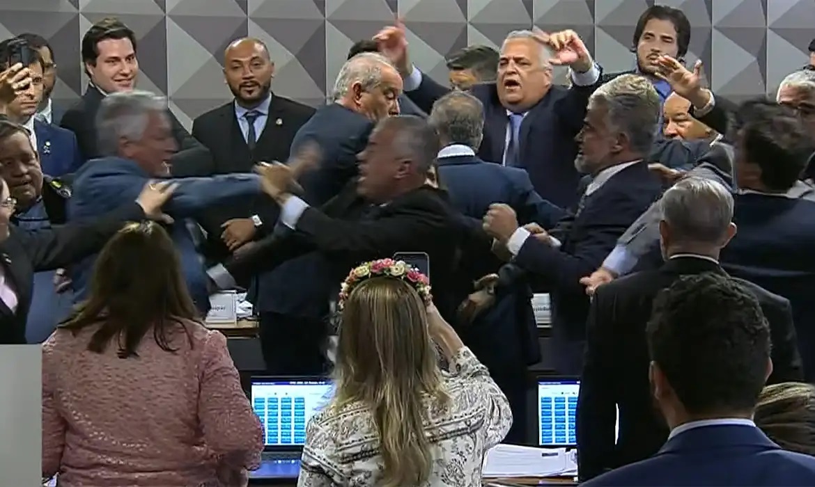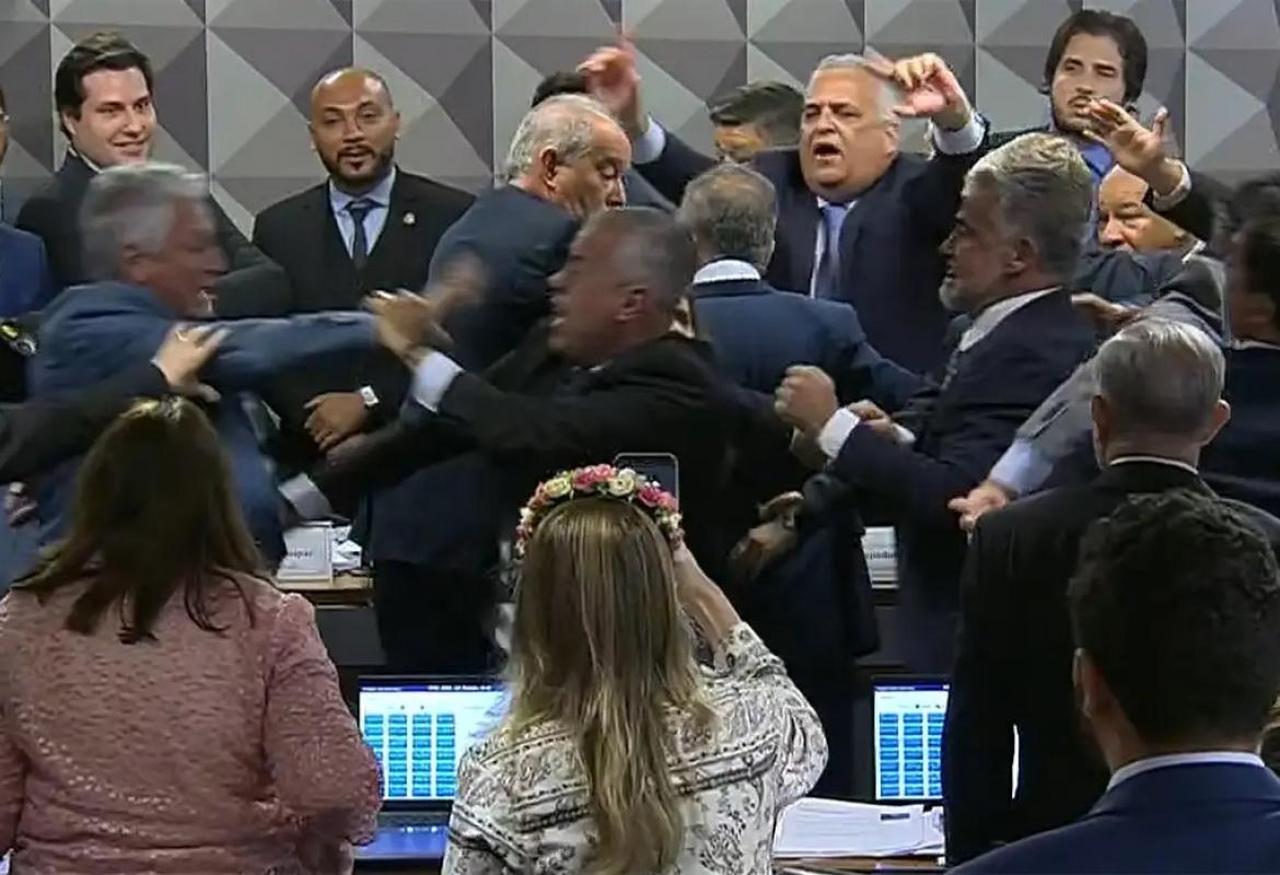E mais confusão e briga quando o resultado da aprovação foi anunciado. Inclusive com gritos, empurra-empurra e deputado caindo no chão.