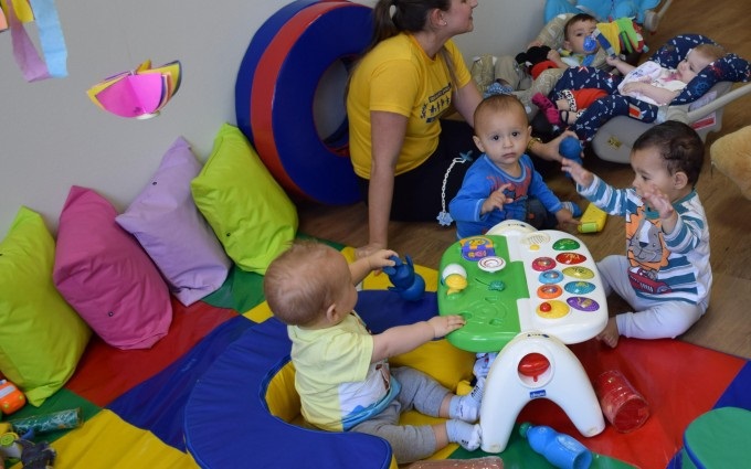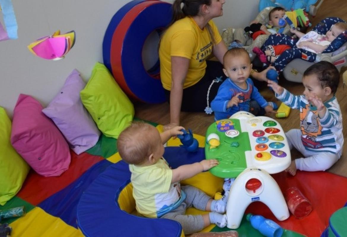 A creche Sesc Criança atende gratuitamente, de forma integral, dependentes de comerciários de um a três anos de idade.