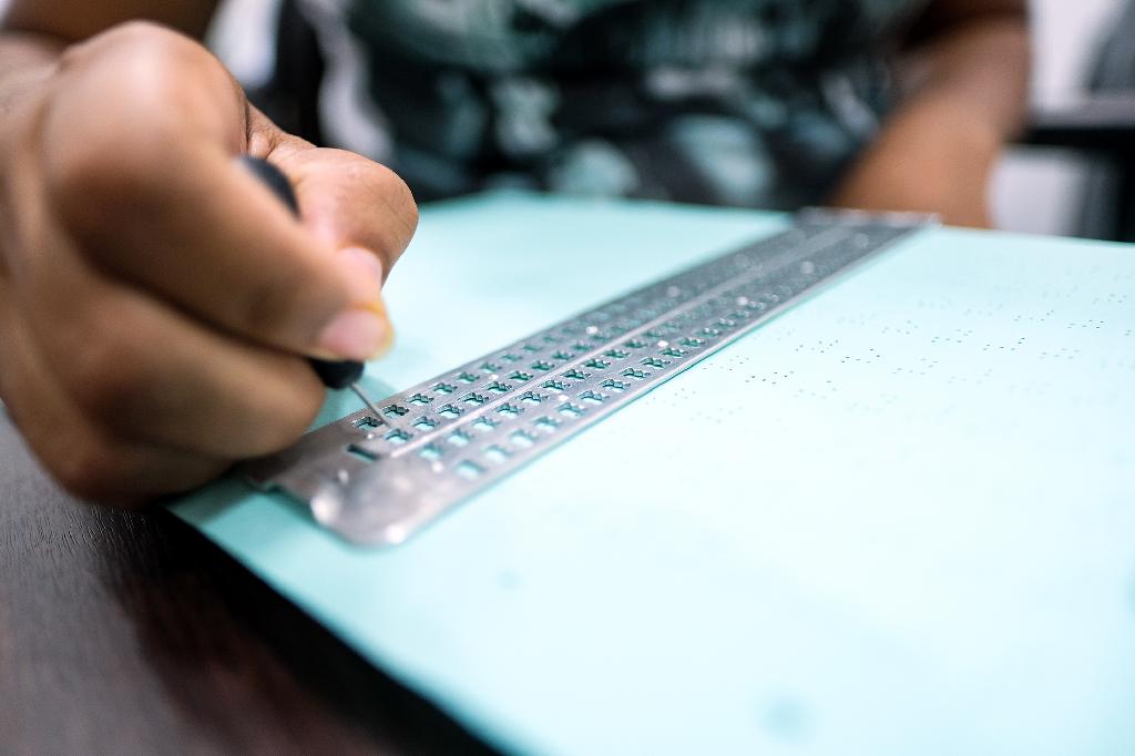 Com o uso da reglete, uma régua com espaços chamados celas contendo duas colunas de três pontos cada uma, e da punção, um material com ponta em aço para a marcação, os participantes do curso descobriram como usar os pontos para fazer 63 combinações diferentes e formar palavras e números da simbologia utilizada na escrita e leitura de uma pessoa não cega. Também aprenderam que, com a reglete, a escrita deve ser feita da direita para a esquerda, porque as palavras são lidas pelo relevo que é formado ao se afundar a punção no papel.