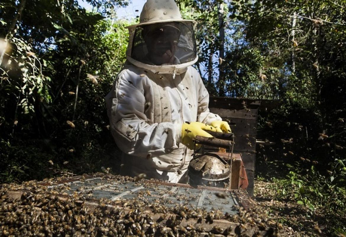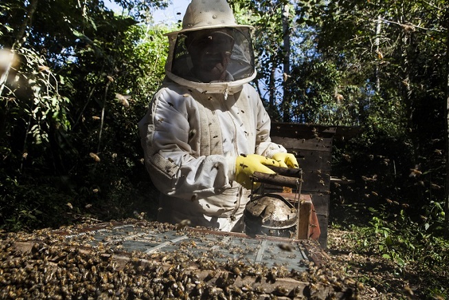 Em seis anos de experiência como apicultor, o senhor Antônio Pereira atingiu uma produção de 500 quilos de mel por mês.