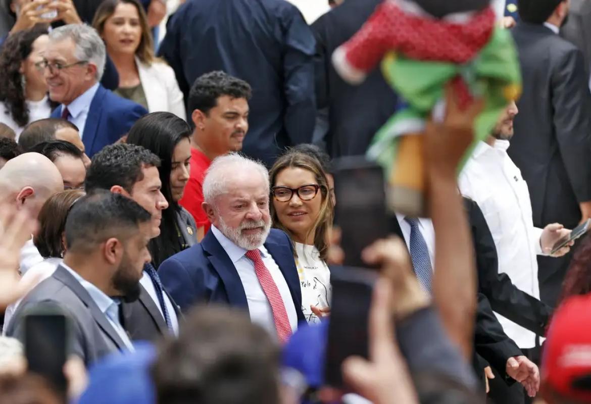 Após a cerimônia, o presidente Lula desceu a rampa do Palácio do Planalto e cumprimentou manifestantes.