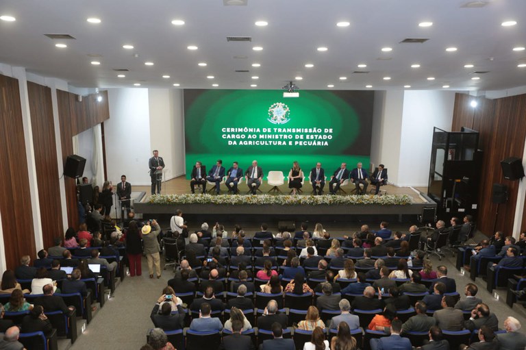 O ministro da Agricultura, Carlos Fávaro tomou posse, na tarde desta segunda-feira, durante solenidade realizada na sede da Embrapa, em Brasília.