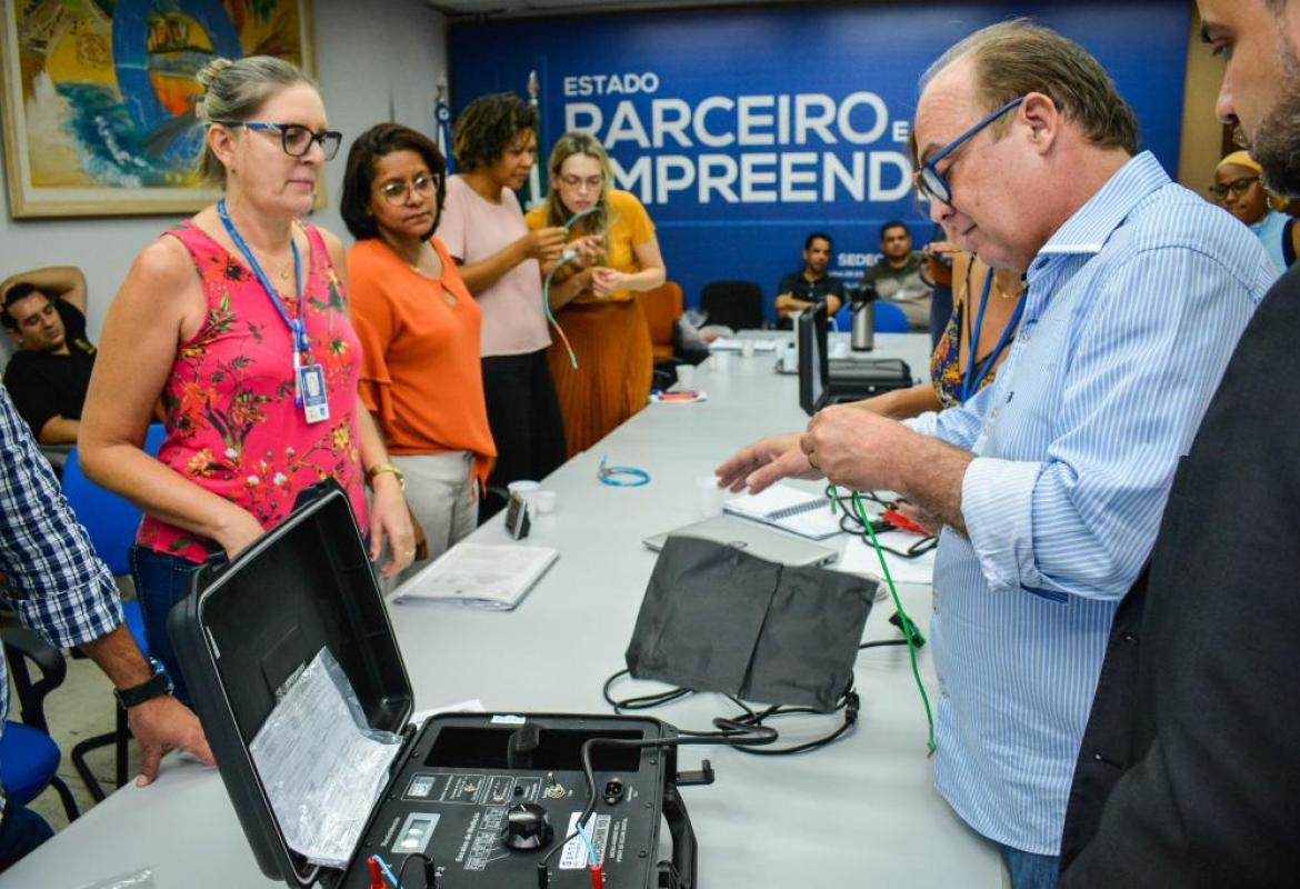 O Sindicel também entregou em doação ao secretário de Desenvolvimento Econômico, César Miranda, um microhmímetro digital, que é o aparelho que faz a medição nos ensaios do Ipem MT.