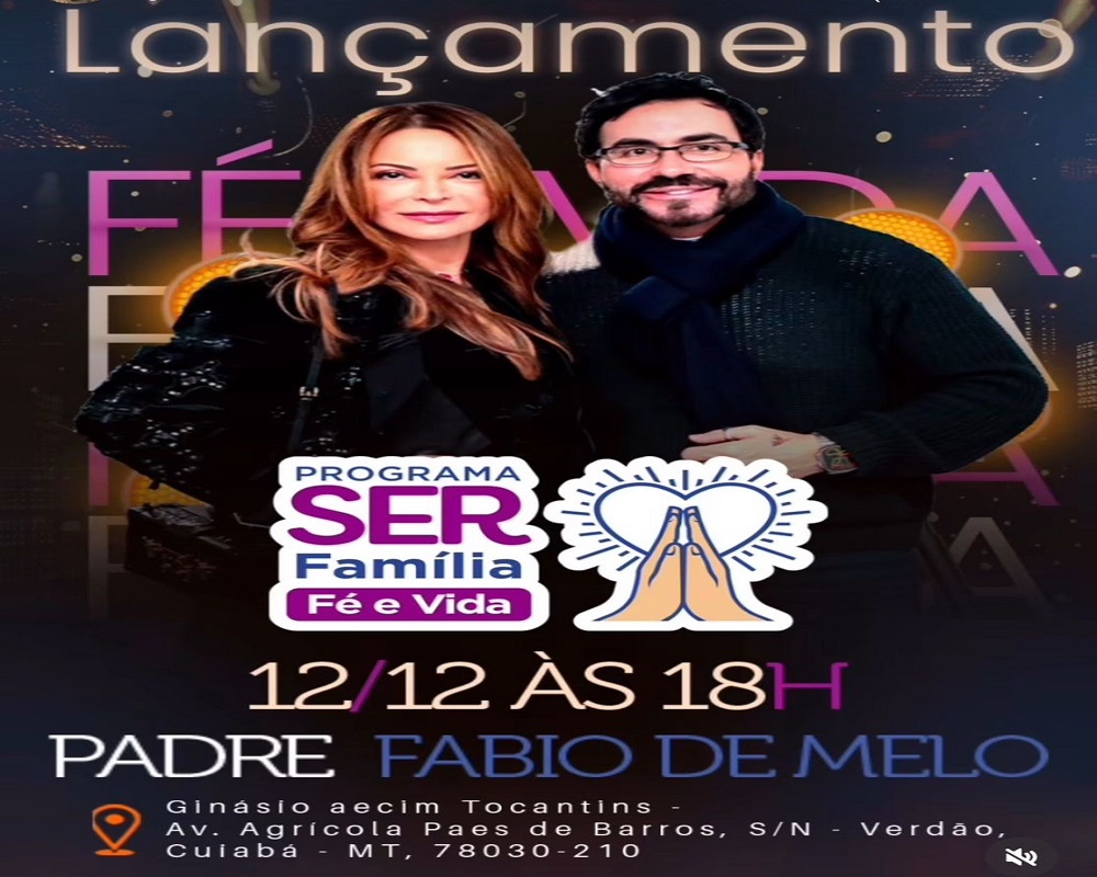 Iniciativa da primeira-dama, Virginia Mendes, em parceria com o padre Fábio de Melo, o projeto vai contar com serviços públicos direcionados à cidadania e saúde mental, além de uma palestra-show do sacerdote.