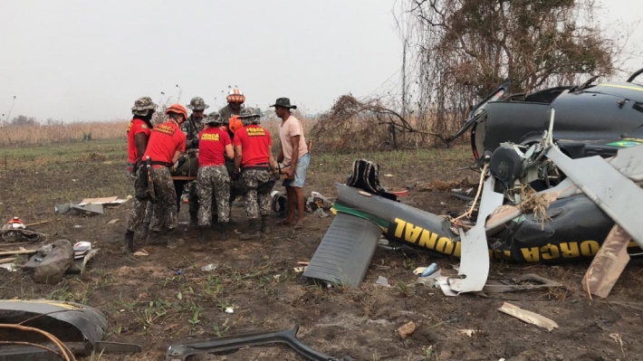 Um helicóptero da Força Nacional que estava atuando no combate a incêndios no Pantanal de Mato Grosso caiu na tarde desta quinta-feira.