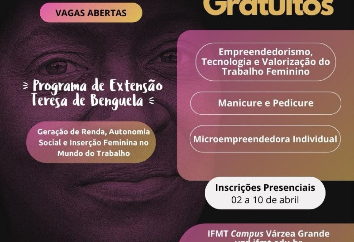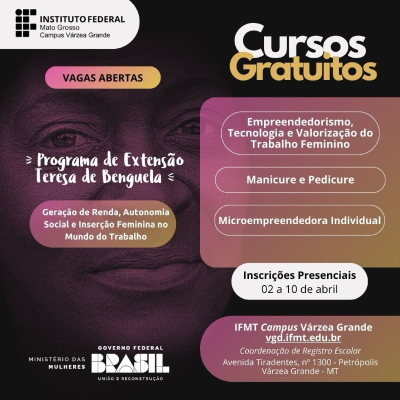 Os cursos fazem parte do programa de extensão 'Tereza Benguela' e são voltados às mulheres em situação de vulnerabilidade social, com idade a partir de 18 anos e escolaridade mínima.