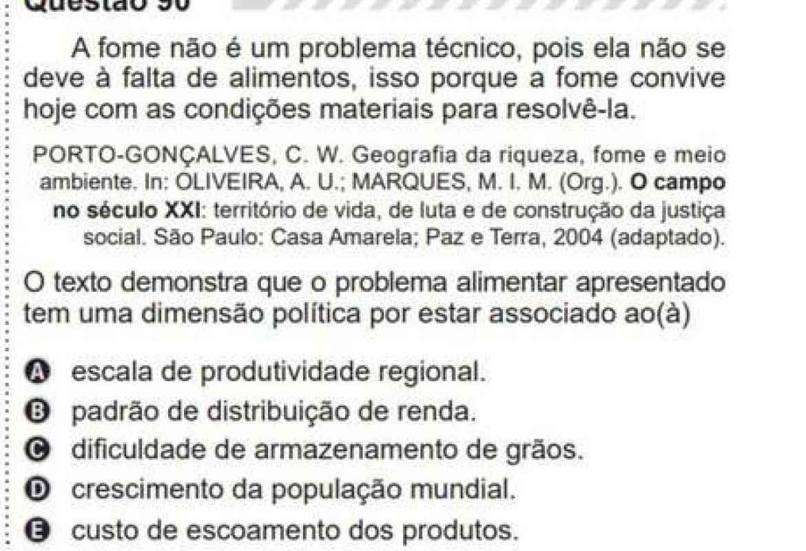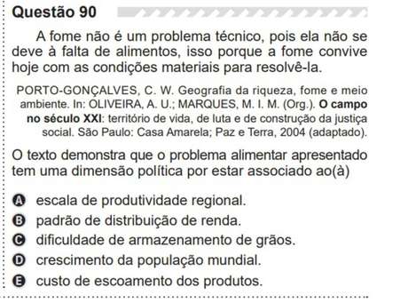 O item anulado falava sobre a fome e pedia para que o candidato demonstrasse porquê o problema alimentar está associado a uma dimensão política.