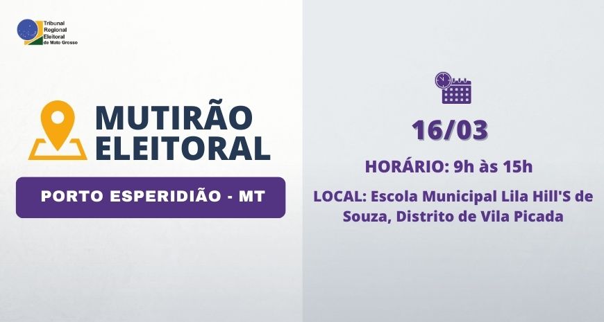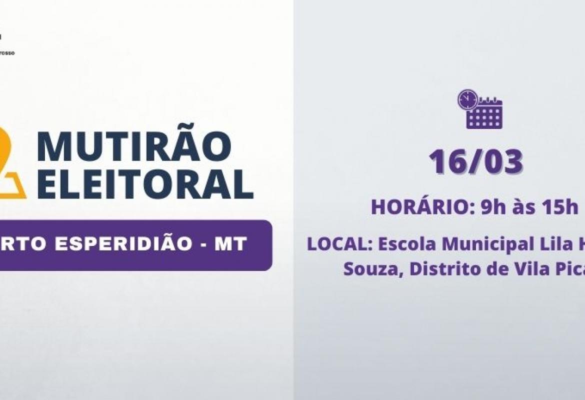 A Justiça Eleitoral, por meio da 18ª Zona Eleitoral, com sede em Mirassol D’Oeste, vai realizar duas etapas de um mutirão, no município de Porto Esperidião, no mês de março.