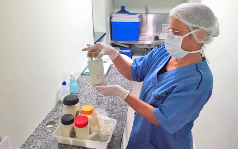 O leite humano recolhido alimenta recém-nascidos prematuros hospitalizados, na ausência do leite de suas próprias mães.