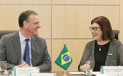 O Ministério da Agricultura e Pecuária recebeu, pela primeira vez em 165 anos, a visita de um presidente da Petrobras. Magda Chambriard e o ministro Carlos Fávaro discutiram a integração entre o agronegócio e o setor energético.