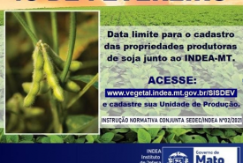 Prazo para produtor cadastrar área de plantio de soja no Indea termina nesta terça-feira