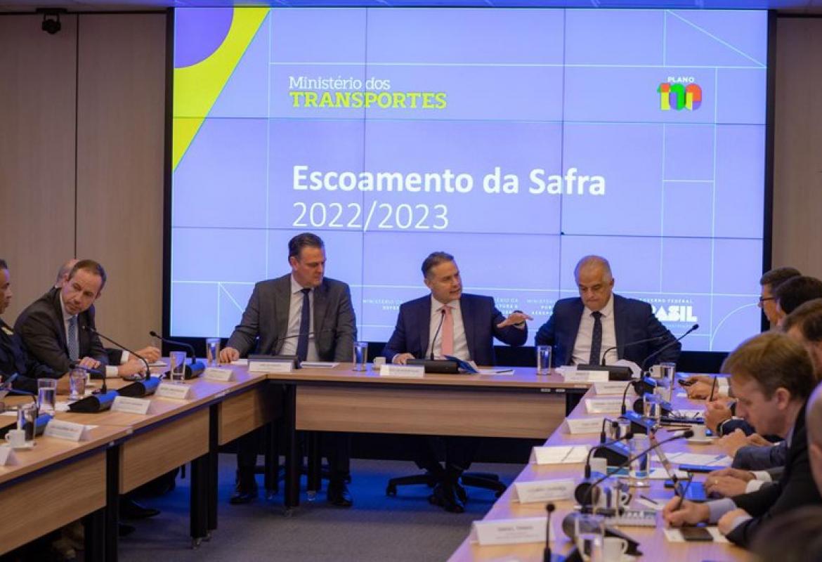 Com a previsão de uma produção recorde no Brasil, o ministro da Agricultura e Pecuária, Carlos Fávaro, participou da reunião de planejamento do escoamento da safra 2022/2023, que prevê investimentos de dois bilhões e 700 milhões de reais já nos próximos dias.