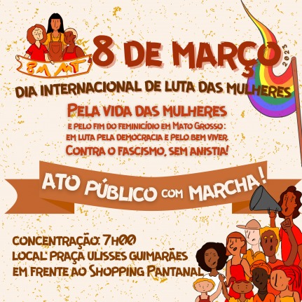 Já na quarta-feira, oito de março, pela manhã, as mulheres saem em marcha para se juntar ao ato público, que terá concentração na Praça Ulisses Guimarães.