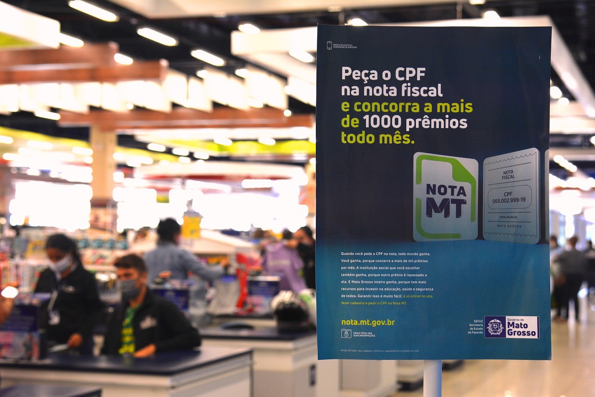 O Nota MT, criado em junho de 2019, distribui prêmios mensais para incentivar a cidadania fiscal ao consumidor pedir CPF na nota fiscal em compras.