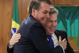Mauro Mendes e Bolsonaro inauguram trecho do asfalto que liga Mato Grosso aos portos de Miritituba, no Pará.