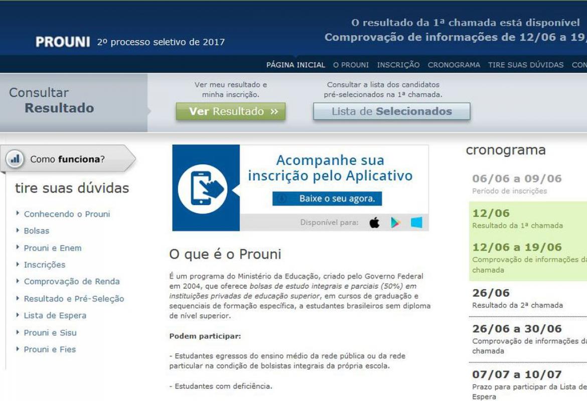 Resultado do Prouni já está disponível na internet
