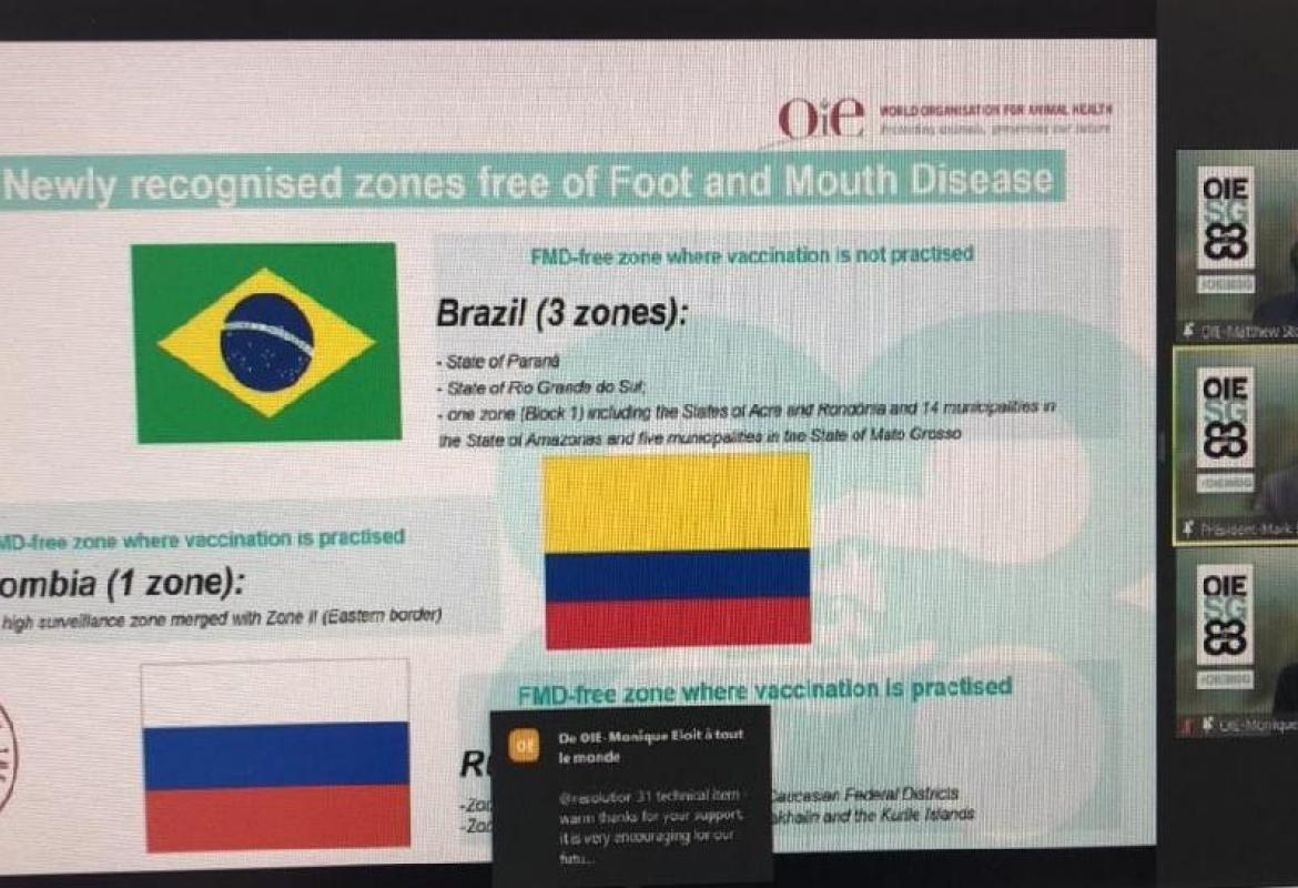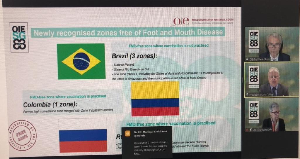 A OIE, Organização Mundial de Saúde Animal, reconheceu, nesta quinta-feira, na sua Assembleia Geral de número 88, o município de Rondolândia e partes de Aripuanã, Colniza, Comodoro e Juína, na região noroeste de Mato Grosso, como zona livre de febre aftosa sem vacinação.