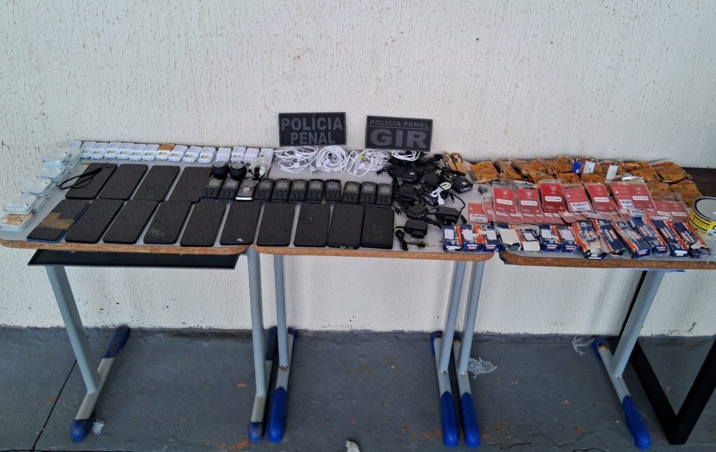 Além dos aparelhos de celulares, os policiais penais também apreenderam mil 265 porções de entorpecentes, como maconha, cocaína, entre outros.