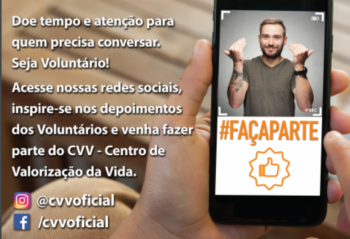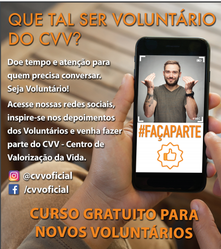 Está terminando o prazo para inscrição ao Programa de Seleção de Voluntários do CVV, Centro de Valorização da Vida, em Cuiabá.