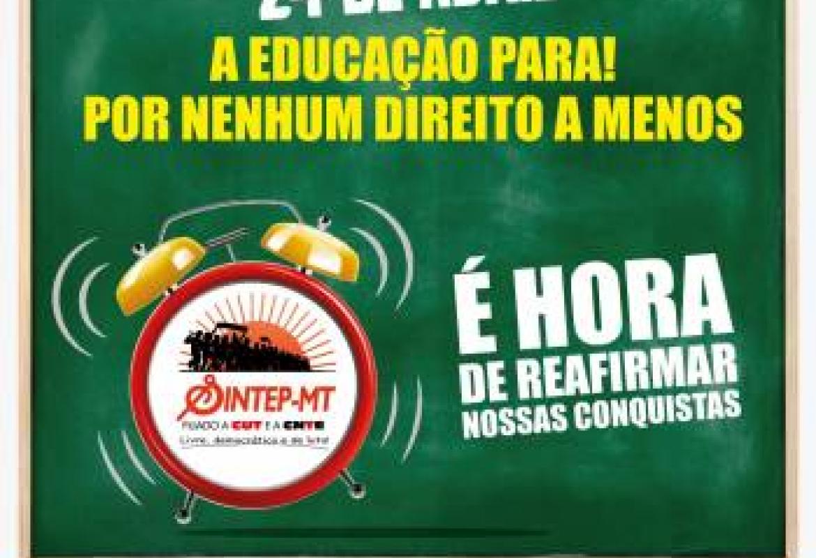 O Sindicato dos Trabalhadores no Ensino Público de Mato Grosso, Sintep, confirmou a paralisação de um dia, na próxima quarta-feira, 24 de abril.