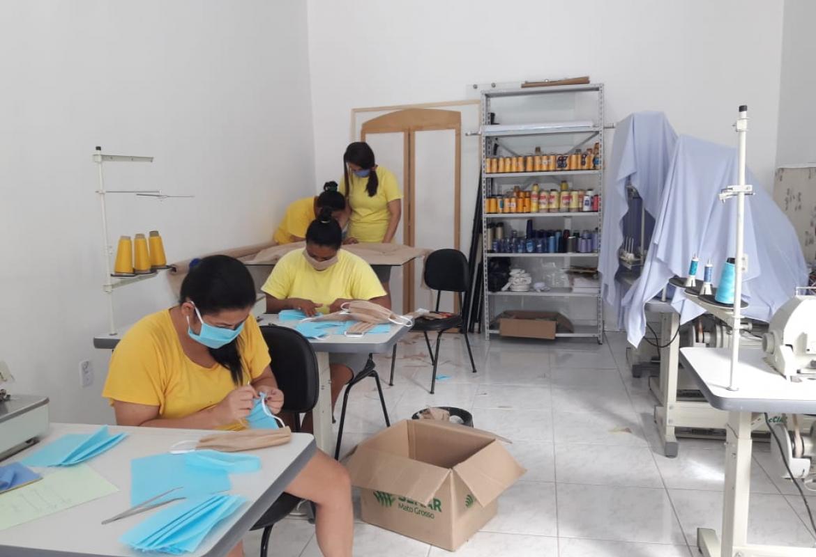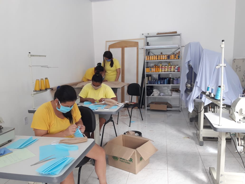 Máscaras de tecido estão sendo confeccionadas por reeducandas da Penitenciária Feminina Ana Maria do Couto May, em Cuiabá, e da Cadeia Pública de Nortelândia.