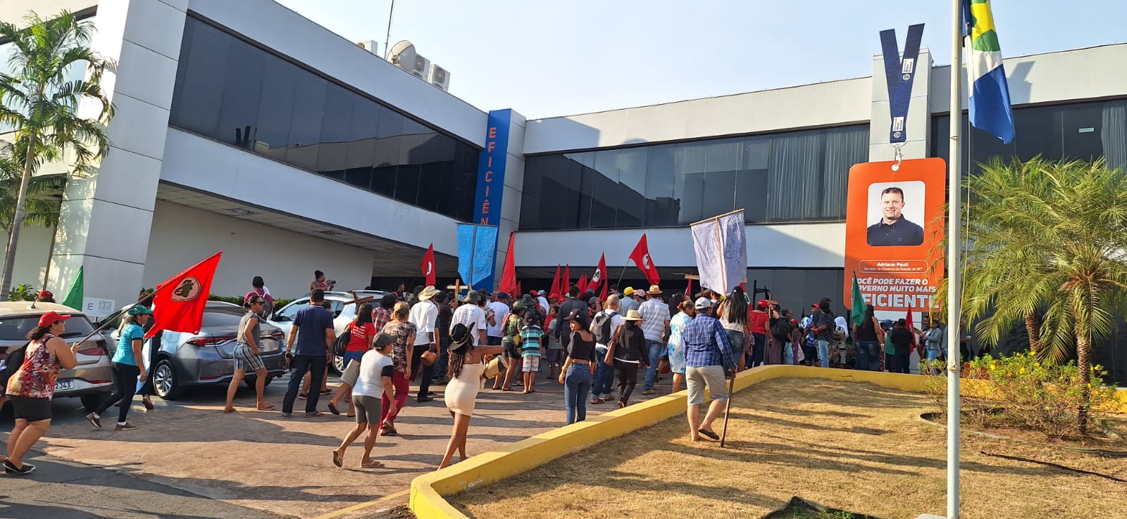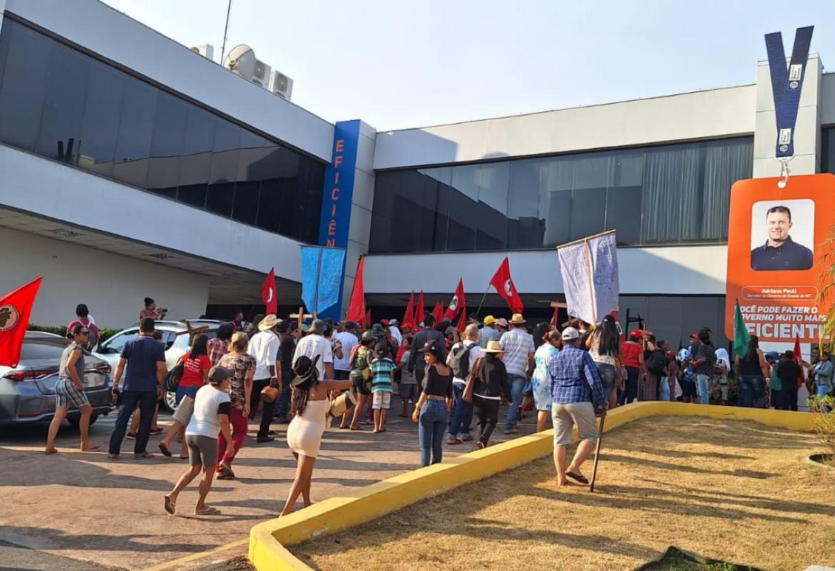 Um grupo de manifestantes do MST, Movimento dos Trabalhadores Rurais Sem Terra, ocupou a entrada do Palácio Paiaguás, sede do Governo do Estado, no Centro Político Administrativo em Cuiabá, nesta quinta-feira.