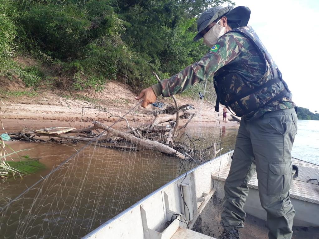Ao todo foram apreendidas 27 redes de emalhar, que não estavam armadas em forma de armadilha, além de 42 quilos de peixes das espécies de matrinchã, caranha, peixe cachorro, bicuda e sardinha.
