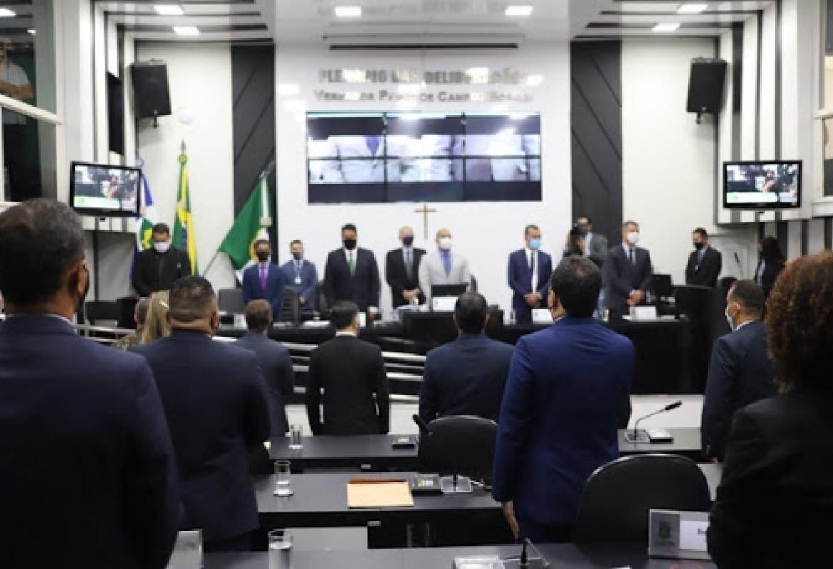 Uma sessão solene, presidida pelo vereador Juca do Guaraná Filho, do MDB, marcou o início dos trabalhos na Câmara Municipal de Cuiabá, para a 20ª Legislatura, que compreende o período de 2021 a 2024.