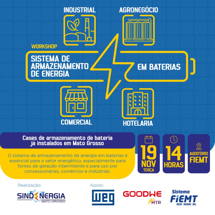 O evento gratuito é realizado pelo Sindenergia MT (Sindicato da Construção, Geração, Transmissão e Distribuição de Energia Elétrica e Gás de Mato Grosso), em parceria com a WEG e MTR GOODWE, indústrias.
