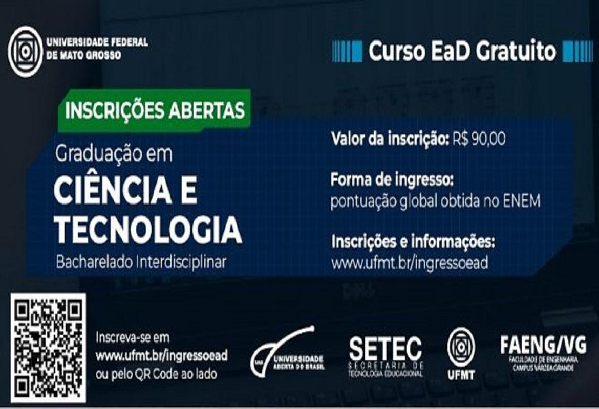 A UFMT, Universidade Federal de Mato Grosso, publicou o edital de inscrição para graduação em Ciência e Tecnologia na modalidade EAD, educação a distância.