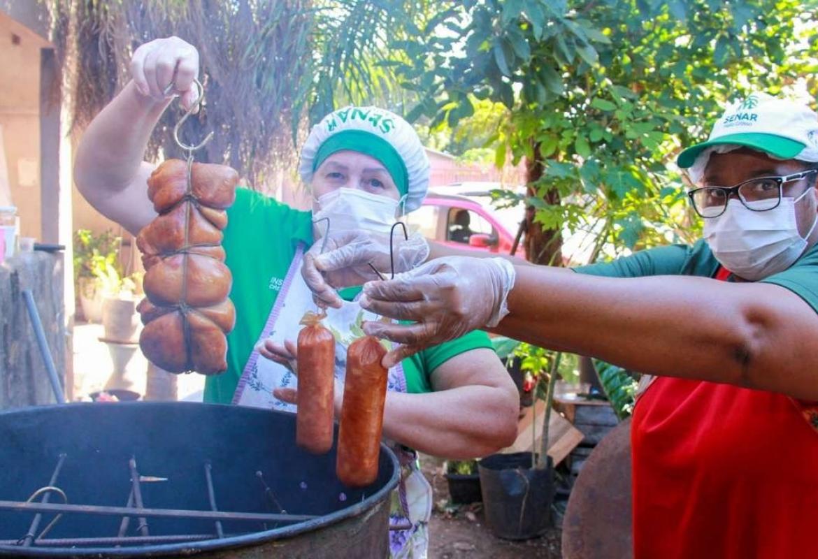 Durante o curso, os alunos acompanharam todas as etapas da produção: da desossa do frango à moagem da carne, do preparo dos temperos ao ponto ideal da linguiça calabresa, passando ainda pela montagem do tradicional rocambole de frango.