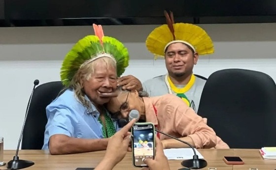 O cacique mato-grossense, Raoni Metuktire, manifestou apoio à ministra do Meio Ambiente e Mudança do Clima, Marina Silva, expressando repúdio aos ataques sofridos por ela em audiência da Comissão de Infraestrutura do Senado.