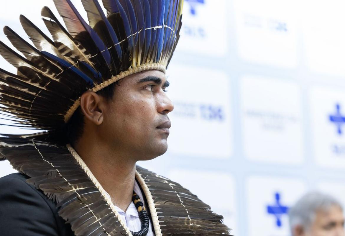O secretário de Saúde Indígena do Ministério da Saúde, Ricardo Weibe Tapeba, concedeu uma coletiva à imprensa nesta terça-feira (24) para falar das ações do governo federal no combate à crise humanitária nas terras Yanomami.